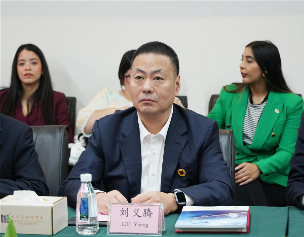 刘义腾对远道而来的拉美友人及福建省对外经济合作中心的领导表示热烈欢迎。他在交流中表示,四川省福建商会作为获评中国社会组织最高等级——“5A级机构”及“全国四好商会”的优秀社团组织,经过二十余年的稳健发展,目前已拥有16家分会、2家行业协会分会、11家团体会员单位,汇聚了超过5000家会员企业。同时,刘义腾也向来宾介绍了冶控集团的最新发展情况。他介绍,冶控集团围绕“五个统一”战略布局,全面推动绿色低碳与数智化转型,在提升运营效率、优化产品结构、强化品牌影响力等方面取得了显著成效,为实现高质量可持续发展奠定了坚实基础。