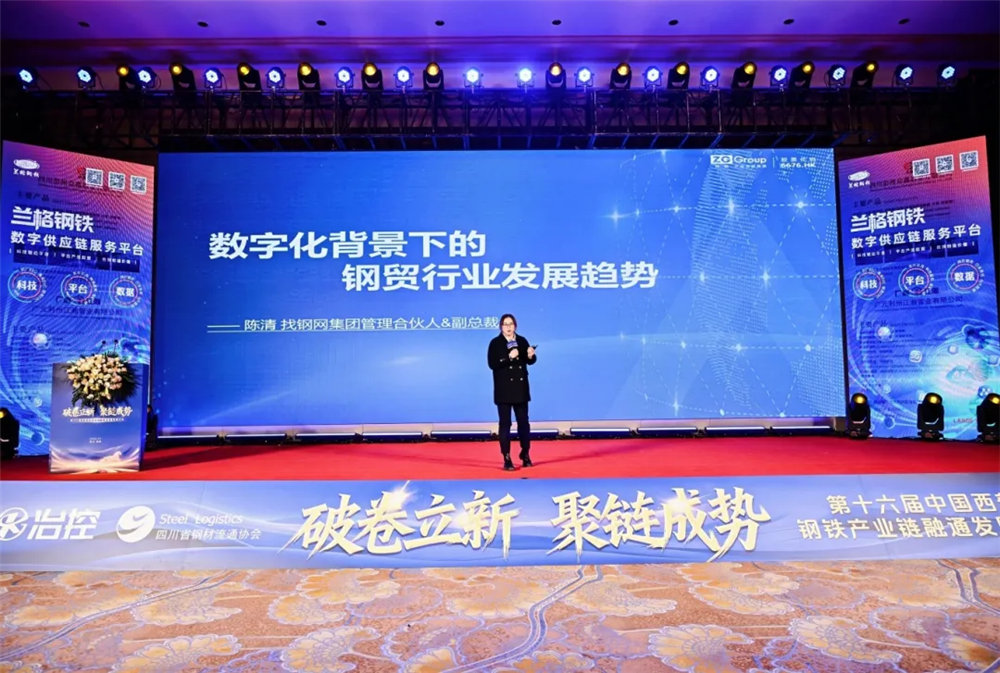 找钢网集团管理合伙人、副总裁陈清分享《数字化背景下的钢贸行业发展趋势》为题的报告。